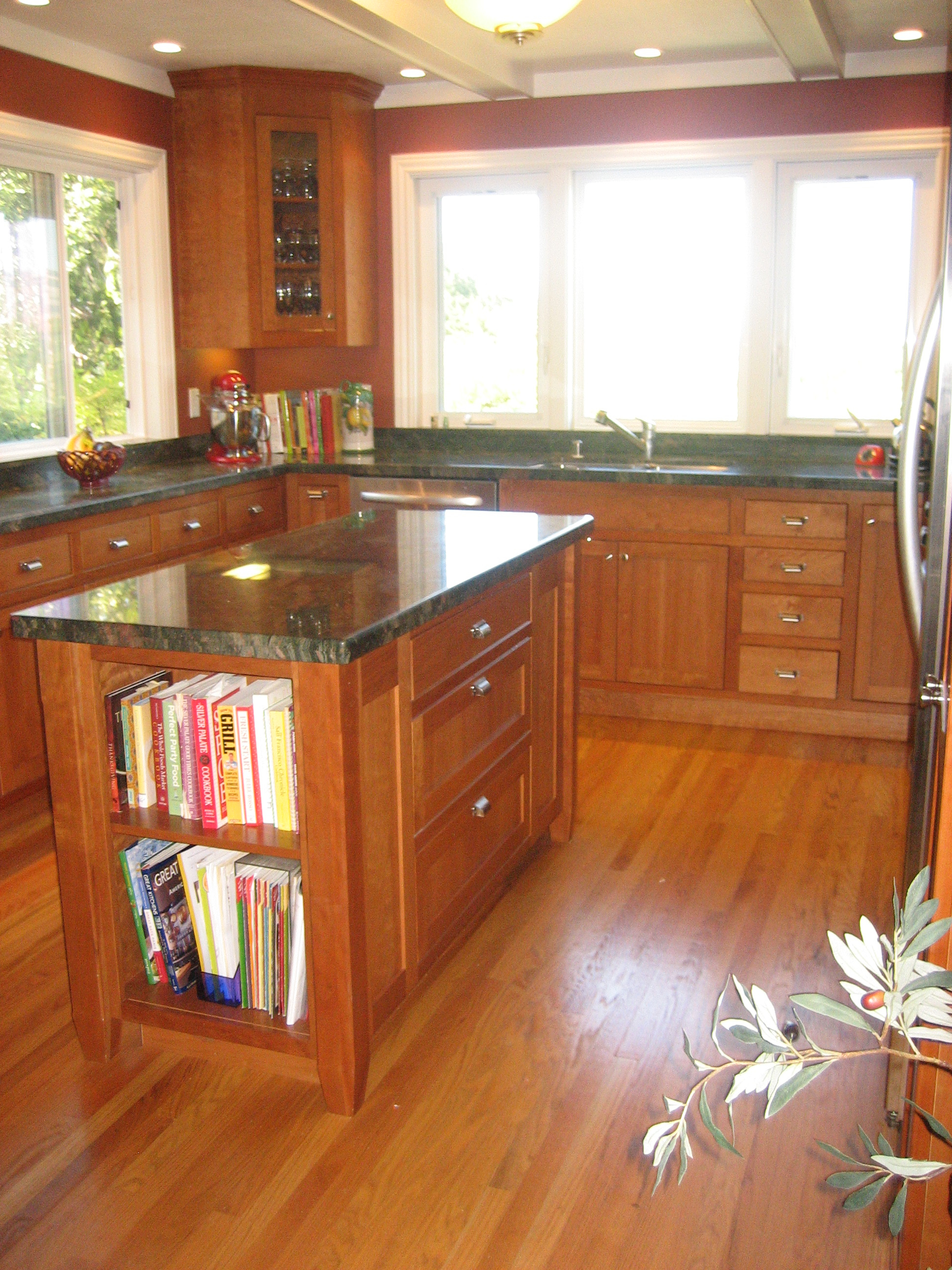 Stratford Residence – Kitchen #3 Published January 22, 2013 at 1944 × 2592 in Portfolio ← Previous Next → The green granite countertops complement the warm wood tones of the cabinets and the terra cotta wall color. Like Loading...